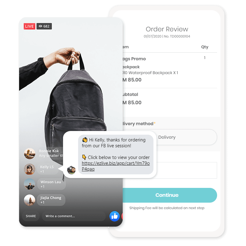 Automated assistance to manage all FB live orders. From reservation to payment & delivery, never miss a purchase or booking again. Find out more today!